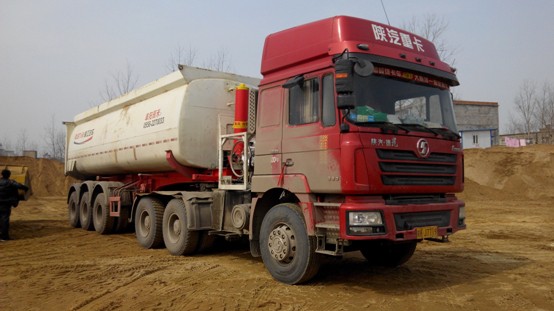 2014年3月11日,在安徽省合肥市渝皖汽車燃?xì)饪萍加邢薰就瓿蓸榆嚫难b。陜汽德龍,牌照:皖KJ7719,發(fā)動(dòng)機(jī):濰柴WP12.380E32,車自重(帶車廂):21噸,每天空車從安徽省阜陽(yáng)市到河南省淮濱縣拉沙子,一個(gè)來回大約150公里,每天跑600公里,載重40噸沙子。